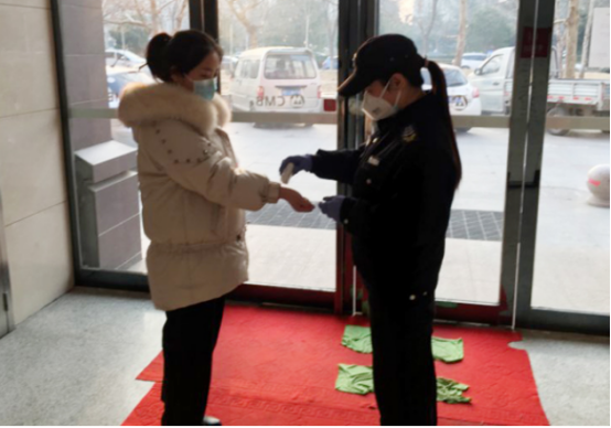 特保大隊五中隊女隊員李方,是一名普普通通的特保隊員,日常工作是負(fù)責(zé)招商銀行營業(yè)廳的安全保衛(wèi)工作,除了把日常的工作開展好,在本次疫情發(fā)生之后,她每日主動配合銀行領(lǐng)導(dǎo)給員工、顧客測量體溫,進(jìn)行消毒工作,堅持一線,守護(hù)安全。