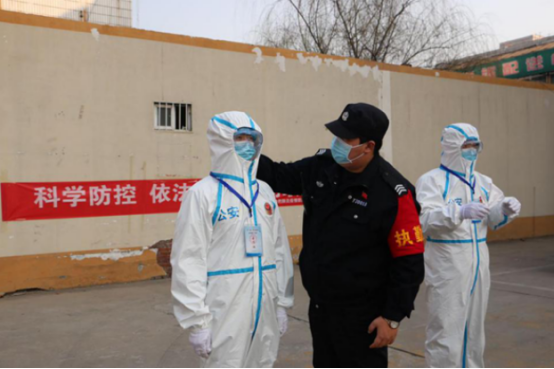 1月23日(臘月二十九),臨近春節(jié),輔警中隊(duì)忙著執(zhí)勤,保障春節(jié)期間的社會(huì)平安。李鑫和隊(duì)員白天站崗,晚上帶隊(duì)巡邏,已經(jīng)處于連軸轉(zhuǎn)的狀態(tài)。就在此時(shí),更艱巨的任務(wù)已經(jīng)在等待他們。1月24日(除夕)夜,華強(qiáng)城小區(qū)發(fā)現(xiàn)疫情,分局指令輔警中隊(duì)迅速趕往華強(qiáng)城小區(qū),執(zhí)行警戒任務(wù)。李鑫二話不說,帶領(lǐng)當(dāng)值特保(輔警)隊(duì)員,趕到執(zhí)勤地點(diǎn)。個(gè)人防護(hù)用品不夠,李鑫讓隊(duì)員先用上,自己開車到家,把愛人為自己家庭準(zhǔn)備的口罩和酒精帶到執(zhí)勤點(diǎn),緩解了防護(hù)用品缺乏的情況。待到分局防護(hù)物品送到前,現(xiàn)場所有執(zhí)勤隊(duì)員已經(jīng)按照要求做好防護(hù),執(zhí)行勤務(wù)。分局楊局長夸獎(jiǎng)輔警中隊(duì)“到位迅速,防護(hù)嚴(yán)密,心中有警”。