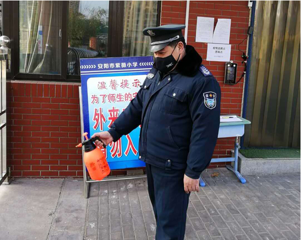 疫情發(fā)生后,人防一大隊80名校園保安按照公司、大隊和學(xué)校領(lǐng)導(dǎo)要求始終戰(zhàn)斗在抗疫工作前沿。在這場看不見硝煙的戰(zhàn)疫中涌現(xiàn)出許多沖鋒陷陣、主動協(xié)助學(xué)校開展防疫工作的保安隊員。紅廟街小學(xué)保安班長袁和平,每天除了做好本職工作,對進(jìn)入校園的人員測量體溫,認(rèn)真登記,守好學(xué)校防控疫情的首道防線外,還主動給學(xué)校校園和辦公室噴灑消毒液。無論白天與黑夜,只要客戶需要,他都隨叫隨到,為學(xué)校防控疫情工作做出自己的貢獻(xiàn)。
