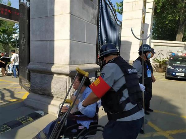 期間,一名開高的考生,因腿受傷不能行走,家長(zhǎng)用車子送至一中大門口。保安班長(zhǎng)王鳳銀見狀后,主動(dòng)跟家長(zhǎng)和學(xué)校溝通后,帶領(lǐng)隊(duì)員接過(guò)了護(hù)送該考生進(jìn)入考場(chǎng)的任務(wù)。他們用一中的輪椅,把考生送至考場(chǎng)外,聯(lián)系老師送至考場(chǎng)內(nèi),考試結(jié)束后,再把考生接出送至大門口。