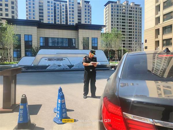 連日來(lái),室外氣溫升至40多度。但是,人防三大隊(duì)派駐在海悅光明城售樓處的保安隊(duì)員們,依然在烈日的炙烤下,每天8個(gè)小時(shí)不停的奔波,指揮車(chē)輛停放,做好巡邏登記巡查工作。他們沒(méi)有警亭遮陽(yáng)傘,烈日曬黑了臉龐,身上的衣服干了又濕、濕了又干,只為守護(hù)客戶(hù)單位和業(yè)主們的平安。
