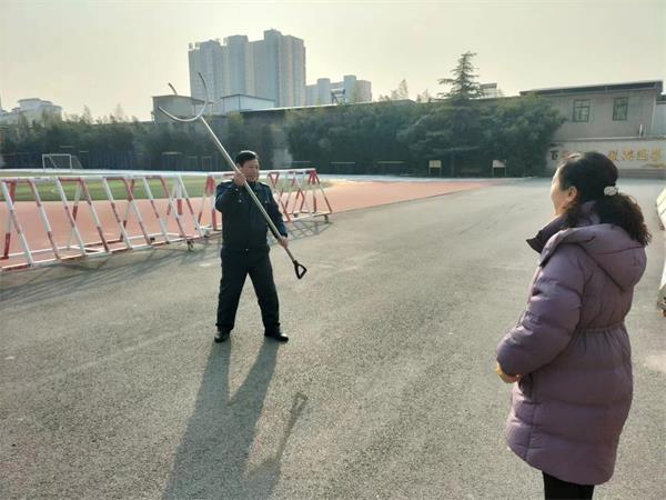 期間,教育局領導詢問陳文斌保安器械都有什么,陳文斌馬上一一介紹保安八件套功能和使用,包括一鍵報警。隨后,局領導問他會不會使用器械,陳文斌現場展示了一套高質量的鋼叉操,動作標準,口號響亮,充分展現了洹河保安過硬的業(yè)務技能和良好形象,教育局領導們高高豎起大拇指,連連稱贊,直夸陳文斌就是四中的保護神。