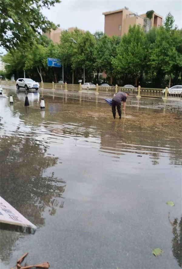 劉紅賓在積水中忙碌的身影,成為了街頭一道獨特的風景。他全神貫注,不顧雨水的拍打和污水的浸泡,只為盡快排除積水,恢復道路的暢通與安全。經過他的不懈努力,積水逐漸退去,道路恢復了往日的模樣。