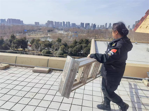原來事情是這樣的。2月15日午時,趙書娜巡邏時發(fā)現(xiàn)廣場上空有無人機飛行,便立即尋找無人機操控人員,當巡查到宣文館喂鴿子處時,發(fā)現(xiàn)有一名游客正在操控無人機,趕忙上前勸阻。這時無人機剛好電量低掉落在高數(shù)十米的宣文館平臺上,該游客情緒有點波動,請求工作人員將其撿回。趙書娜隨即聯(lián)系中隊長,向館方上報情況后取來備用鑰匙。隨后,趙書娜和中隊長搬著梯子一同到三樓、四樓平臺尋找,終于在四樓平臺找到掉落的無人機。經(jīng)核實無誤后,聯(lián)系無人機機主在安檢進行登記認領,該名游客自稱是從北京前來參觀。