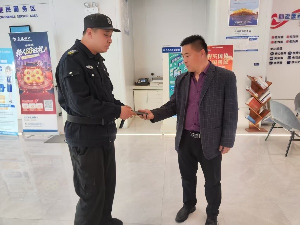 4月14日上午11時許,郜科成如往常一樣對網(wǎng)點自助服務(wù)區(qū)進(jìn)行安全巡檢。在ATM機(jī)旁的操作臺上,一部嶄新的智能手機(jī)靜靜地躺著?!斑@個位置人流密集,失主肯定急壞了!”憑借多年安保工作經(jīng)驗,郜科成第一時間將手機(jī)交給網(wǎng)點主管,并協(xié)助調(diào)取監(jiān)控確認(rèn)失主離開時間。通過聯(lián)系手機(jī)運(yùn)營商和公安系統(tǒng)協(xié)助,網(wǎng)點工作人員很快鎖定失主信息。原來,李先生匆忙辦理業(yè)務(wù)時不慎遺落手機(jī),彼時正心急如焚地折返尋找。當(dāng)接到銀行電話時,他難掩驚喜:“本來都做好最壞打算了,沒想到你們這么快就聯(lián)系上我了!”面對失主送來的感謝,郜科成靦腆地擺擺手:“這都是份內(nèi)事,領(lǐng)導(dǎo)一直教我們要把客戶的事放在心上?!?