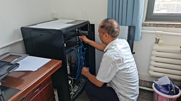 去年夏天,公司網(wǎng)絡(luò)系統(tǒng)突然全面癱瘓,鄧勝軍把剛打好的午飯放到辦公室,拎起工具包就沖向二樓機房。排查、跳線、重啟、驗證,他像“人形掃描儀”一樣在1至5樓來回穿梭。2小時后,數(shù)據(jù)恢復(fù),系統(tǒng)滿血復(fù)活,他卻倚著墻累得不想說話不想動彈。同事們都勸他,勞逸結(jié)合,注意身體,他卻說:“故障不過夜,網(wǎng)絡(luò)不斷線?!?