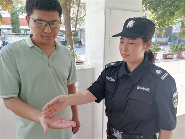 國(guó)慶節(jié)放假前夕,安陽(yáng)市幸福路中學(xué)門(mén)口上演了一幕溫暖人心的場(chǎng)景。人防三大隊(duì)派駐該校保安高美麗如往常一樣堅(jiān)守在下午入學(xué)的“護(hù)學(xué)崗”,一邊引導(dǎo)送學(xué)車輛有序通行,一邊提醒學(xué)生安全入校。在疏導(dǎo)完高峰人流后,例行巡查校門(mén)口區(qū)域時(shí),于人行橫道旁發(fā)現(xiàn)一條精致的金項(xiàng)鏈,鏈身鑲嵌的吊墜完好無(wú)損,初步判斷價(jià)值不菲。