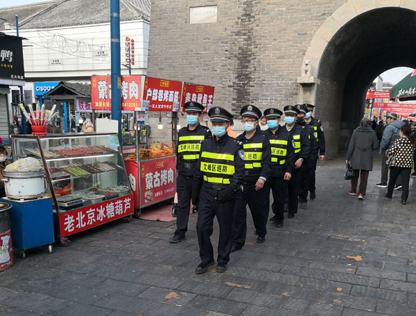 12月3日下午,一場冬雪剛過,氣溫驟降,一隊巡防隊員邁著堅定步伐走過古城街頭巷尾,給群眾帶來了安全感。這是人防一大隊派駐文峰區(qū)專職巡防隊員在進(jìn)行日常巡邏。