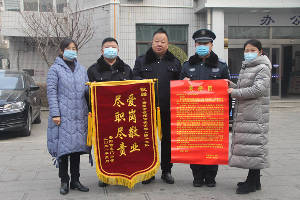 2021年1月22日上午,公司大院迎來兩位客人,文峰區(qū)東門小學(xué)校領(lǐng)導(dǎo),她們專程趕到公司送錦旗和表揚(yáng)信,感謝人防一大隊(duì)保安員張躍洪兢兢業(yè)業(yè)為東門小學(xué)服務(wù),確保師生安全。