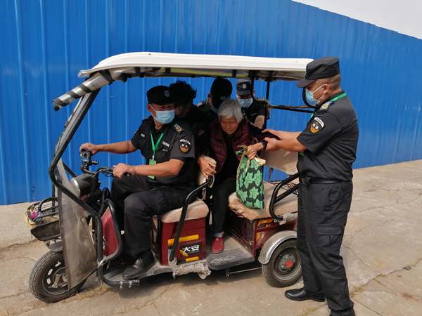 上午11點1O分活動結(jié)束群眾陸續(xù)退場,航校4號門人防一大隊隊員執(zhí)勤中發(fā)現(xiàn)一老太太臉色蒼白坐在路邊不能行動,隊員翟根平馬上上前了解情況,原來是老人有心臟病并做過大手術(shù),現(xiàn)在身體出現(xiàn)不適。了解情況后,翟根平馬上向帶隊負責(zé)人陳志軍報告,隨后,安排隊員蘇民只開三輪車把老人送出去,保安隊員樂于助人的行為受到老人和路過觀眾的一致好評,紛紛為隊員點贊。