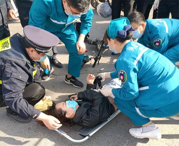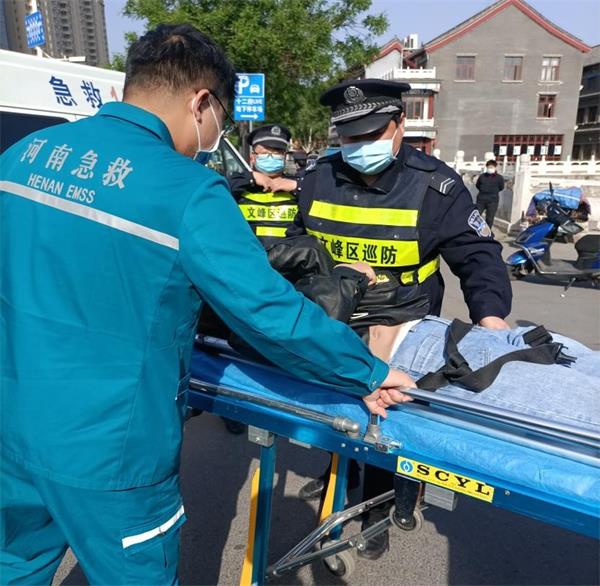 4月28日8時(shí)40分許,人防一大隊(duì)駐文峰區(qū)專職巡防隊(duì)隊(duì)員梁子力、李帥、石玉濤等11名隊(duì)員在轄區(qū)巡邏,來到十二府附近,看到一女子倒在地上呻吟,旁邊還一輛翻倒的電動(dòng)車。隊(duì)員立即上前了解情況。原來,騎電動(dòng)車的李女士為了避讓轉(zhuǎn)彎的汽車側(cè)翻在地,并摔傷了腰部。