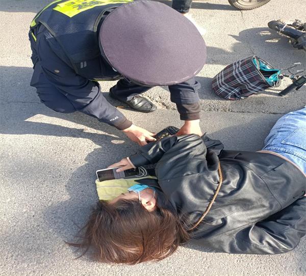 隊(duì)員了解情況后,幫助李女士撥打了120,并聯(lián)系了李女士愛人。因不知了解此事件是不是屬于交通肇事,但為了保險(xiǎn)起見,隊(duì)員同時(shí)撥打122,通知交警。