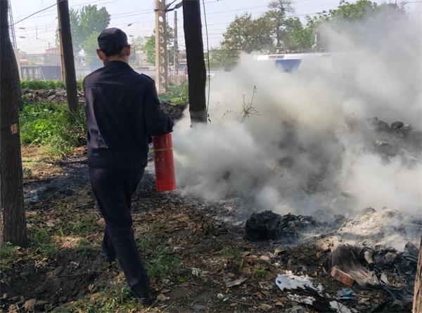 5月5日下午2點(diǎn)30分,人防四大隊(duì)電廠路街道巡防隊(duì)隊(duì)員高麗慧、袁利民在鐵路沿線巡邏,發(fā)現(xiàn)梁邵村附近的鐵路邊濃煙滾滾,有刺鼻的氣味,兩人立即開車前往現(xiàn)場了解情況。到達(dá)現(xiàn)場后,他們發(fā)現(xiàn)鐵路邊的荒草樹等雜物正在燃燒,現(xiàn)場火勢不太大,沒有人員受傷。他們隨即與鐵路工作人員聯(lián)系,并立即利用鐵鍬、滅火器等工具開展滅火行動(dòng),經(jīng)過他們和鐵路員工的共同努力,火勢已經(jīng)基本得到控制,火情基本被消滅,他們的行為受到了轄區(qū)領(lǐng)導(dǎo)的一致表揚(yáng)。