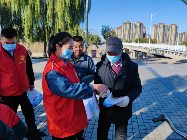 在廣場(chǎng)志愿者們向過(guò)往群眾發(fā)放文明禮儀宣傳手冊(cè)和消防安全手冊(cè)引導(dǎo)大家共建全國(guó)文明城區(qū),注意消防安全共享美麗品質(zhì)安陽(yáng)。