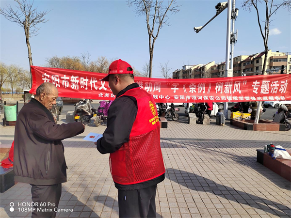 為大力培育和弘揚社會主義核心價值觀,引導(dǎo)廣大群眾樹立文明觀念,3月3日下午,公司組織志愿者來到平原橋法治廣場開展安陽市新時代文明實踐推動周“學(xué)條例 樹新風(fēng)”《安陽市文明行為促進(jìn)條例》集中宣傳活動。