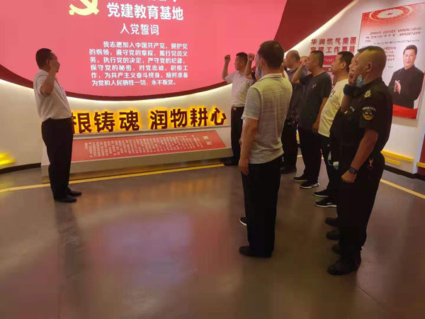 走進(jìn)大廳,首先映入大家眼前的是“強(qiáng)根鑄魂,潤物耕心”幾個大字,體現(xiàn)了華潤人強(qiáng)烈的服務(wù)理念,在一副副鮮明特色的紅色教育展板前了解到華潤燃?xì)獍碴柗止驹谥袊伯a(chǎn)黨的領(lǐng)導(dǎo)下各個階段發(fā)展歷程和強(qiáng)烈的潤物無聲的服務(wù)客戶理念。參觀完畢,大家在支部書記陳志軍帶領(lǐng)下,舉起右拳,莊嚴(yán)重溫入黨誓詞。